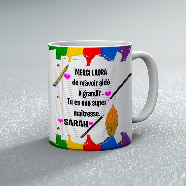 TASSE Mug Merci Maîtresse de m’avoir aidé à grandir personnalisé avec le prénom de votre choix