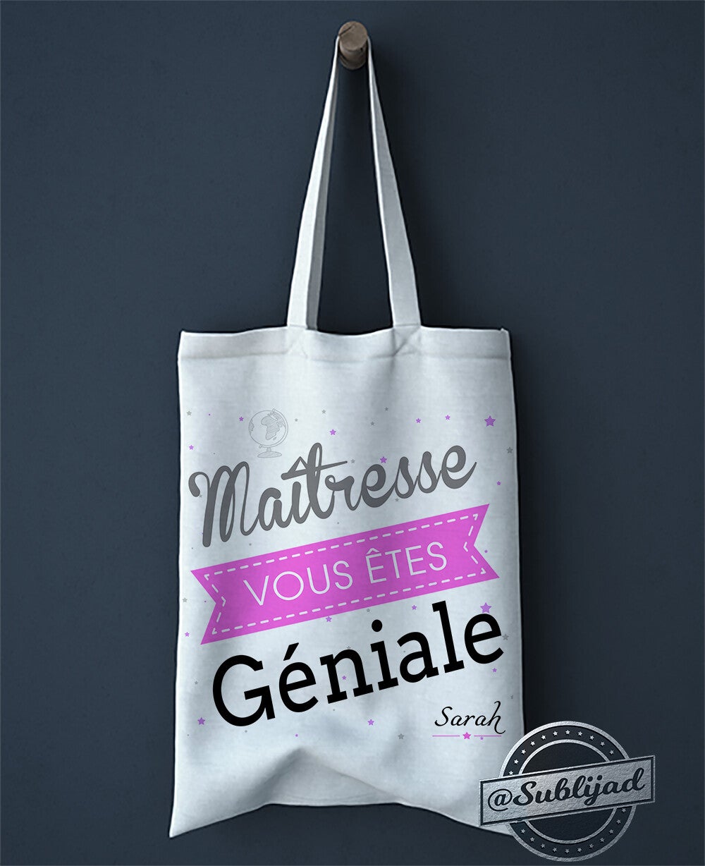 SAC TOTE BAG Ma maîtresse vous êtes géniale personnalisé avec le prénom de votre choix idée cadeau fin d'année